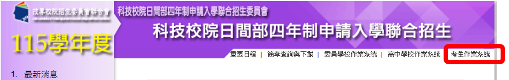 一、115大學申請入學網站連結
