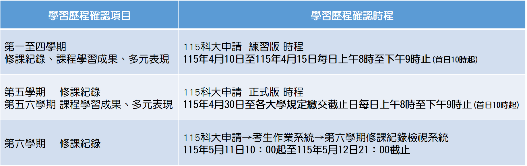 四、科技大學學習歷程資料確認日程說明: