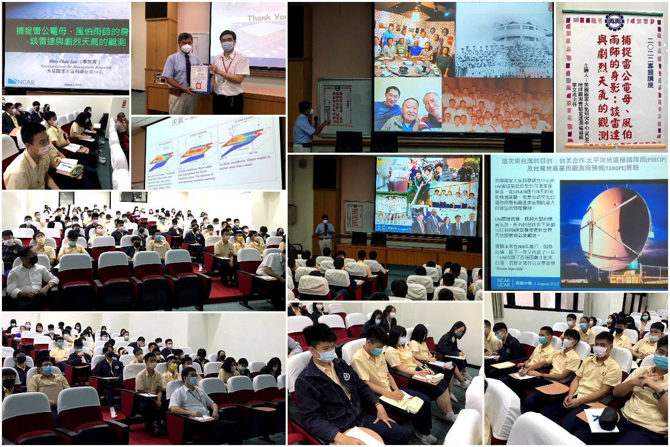 2022年8月3日,再興高中第五屆畢業的大學長:美國國家大氣研究中心(NCAR)地球觀測實驗室遙測儀器組主任李文兆教授返校專題講座 - 「捕捉雷公電母、風伯雨師的身影:談雷達與劇烈天氣的觀測」,講座中談及學長的求學經驗、心路歷程,並且以簡單易懂的語言向大家說明氣象觀測的基礎知識,及學長在多年來研究雷達氣象的成果。