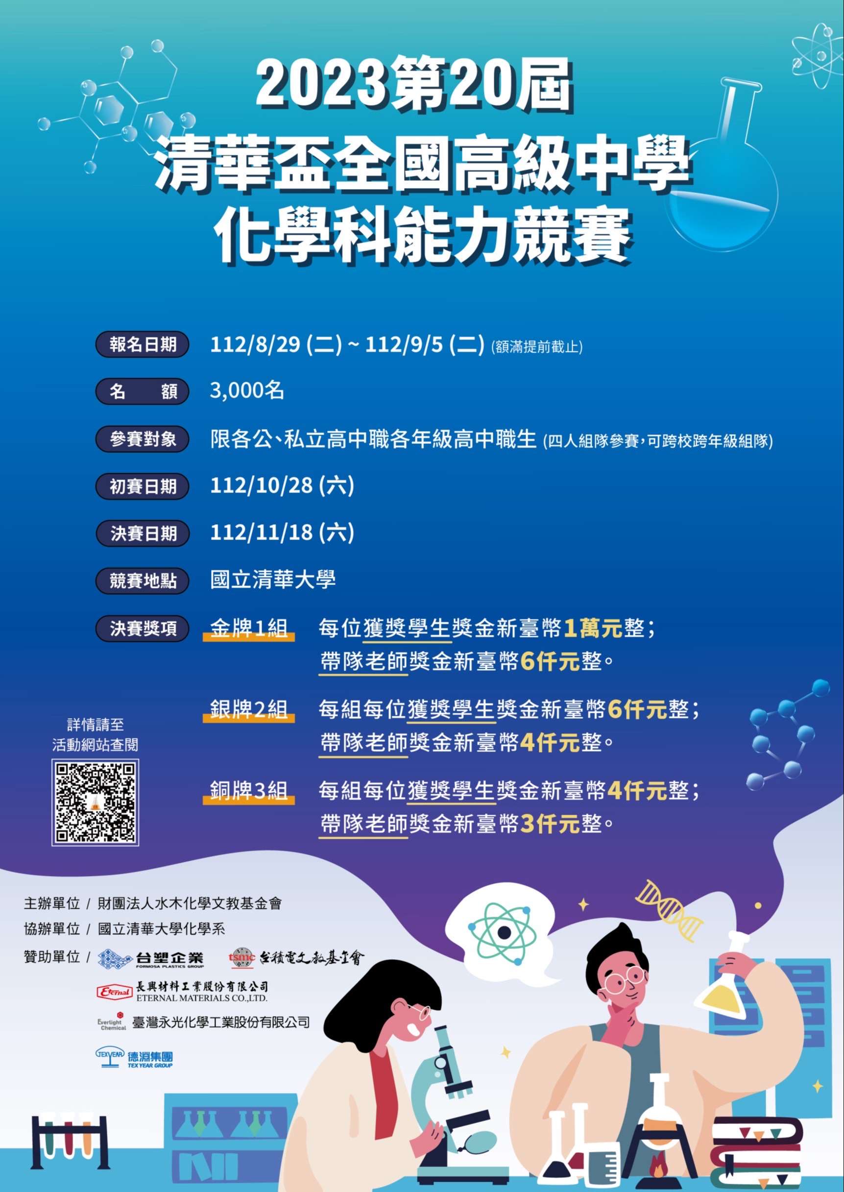三、活動相關問題及競賽詳情,請先參閱簡章及活動網站https://chemcontest.site.nthu.edu.tw/。如有疑問洽承辦人:李小姐(03-5715131分機33616),電子信箱:chemtest@my.nthu.edu.tw。