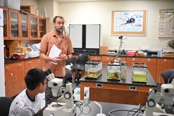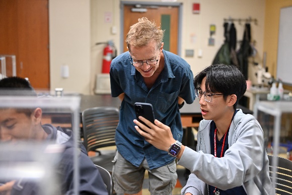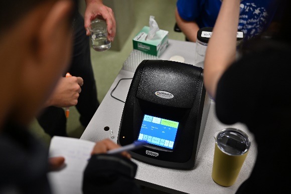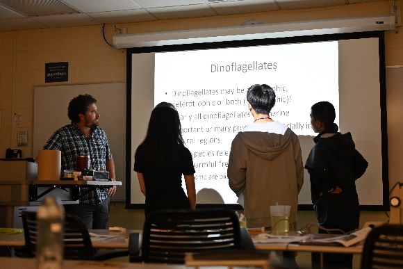 Dr. Wallace是研究水質優養化的專家,課程內容主要帶大家了解優養化對環境生態的影響,優養化的成因,除了自然環境因素,大部分來自人類的活動,尤其是農業、工業廢水的汙染,教授首先邀請同學們腦力激盪,思考如何以最有效的方式改善環境,接著讓學生用顯微鏡觀測海水中的微生物,分辨何為藻類、何為動物,並從培養海觀察水中的有機物質如何影響其生長。