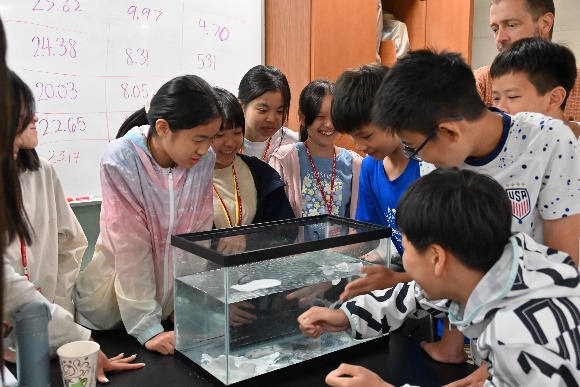 為了讓學習更有成效,學生依據年齡、程度分成三大組,進行校內的實驗課程,高年級組除了課室實驗之外,教授特別安排到鄰近海灣做野外探勘,以期讓研究專題資料更加完整。