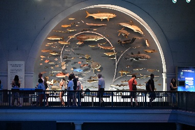 「紐約美國自然歷史博物館」是博物館驚魂夜的場景,博物館有地下一層加上地上四層,總共五層樓,主要展覽廳在一到四樓,其中必須朝聖的四個著名展覽廳包含:位於二樓大廳,約三層樓高的1:1巨型恐龍標本、海洋生物館(Ocean Life)裡的1:1巨型大藍鯨模型、太平洋民族館(Pacific Peoples)裡的摩艾石像(Moai Statue)以及四樓化石區中的暴龍骨骼化石。用完午餐後,我們到IMIX大廳觀看電影Turtle Odyssey,內容講述綠蠵龜的一生,從綠蠵龜破蛋而出,隨著洋流到世界各地的海洋成長、冒險,到返抵出生地孕育下一代,是個非常珍貴的紀錄片。