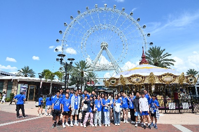 告別愛德菲大學後,我們搭機前往奧蘭多—世界級的渡假勝地,也是整個遊學活動中學生最期待的行程。第一站先到奧蘭多的地標-奧蘭多之眼,這是一座40層樓高的摩天輪,底下設有遊樂場、水族館,以及杜莎夫人蠟像館,周遭也有許多充滿熱帶風情的特色攤販。Disney Springs則是在迪士尼園區裡最大的商場,除了有迪士尼主題商店、各式異國餐廳,晚間九點鐘還有無人機燈光秀,讓遊客大飽眼福。